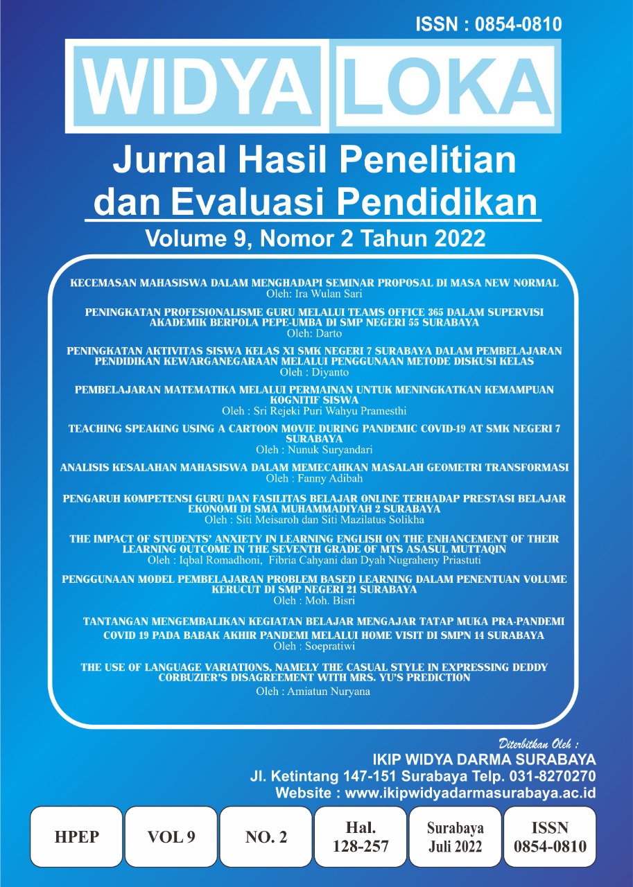 Vol. 8 No. 2 (2021)Jurnal Widyaloka Volume 8 Nomor 2 Tahun 2021 ini terbit pada bulan juli 2021. Volume ini berisi 6 artikel yang ditulis oleh 7 penulis berasal dari berbagai instansi di seluruh Indonesia.