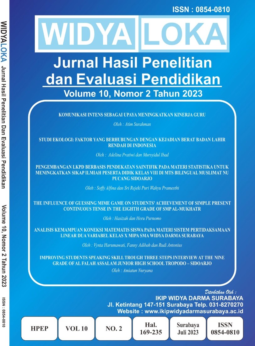 Vol. 10 No. 2 (2023)Jurnal Widyaloka Volume 10 Nomor 2 Tahun 2023 ini terbit pada bulan Juli 2023. Volume ini berisi artikel yang ditulis oleh penulis-penulis berasal dari berbagai instansi di seluruh Indonesia.